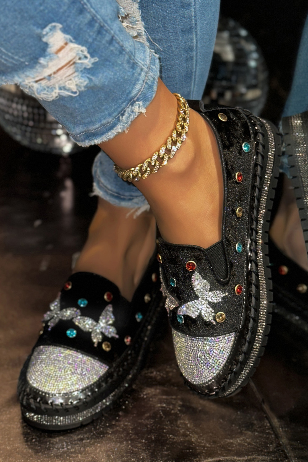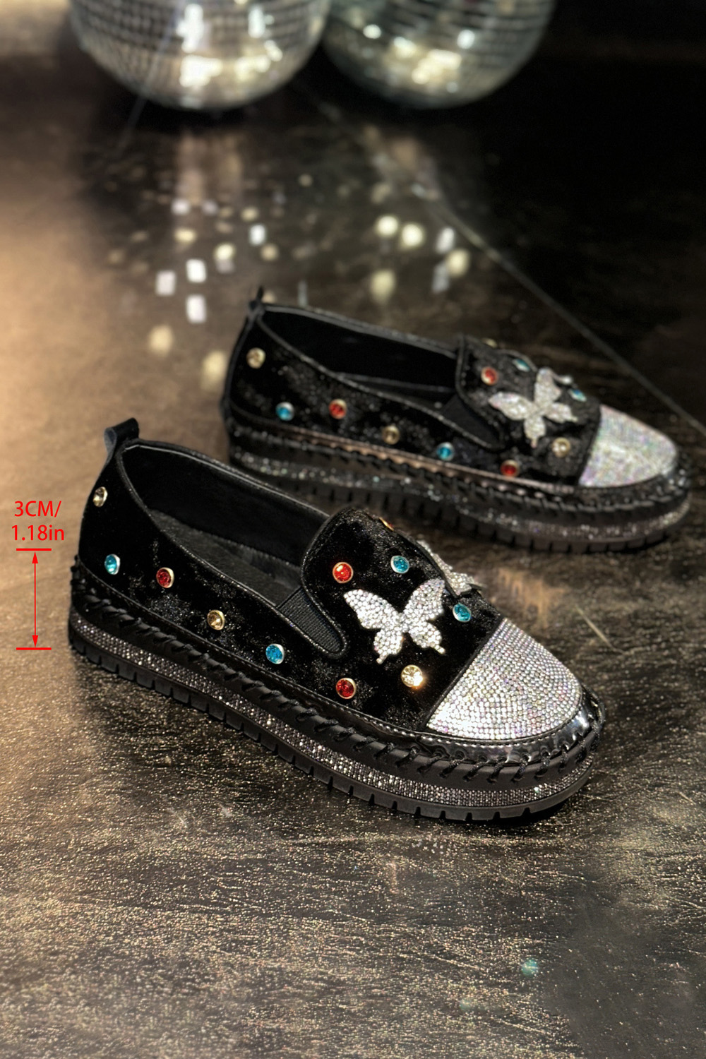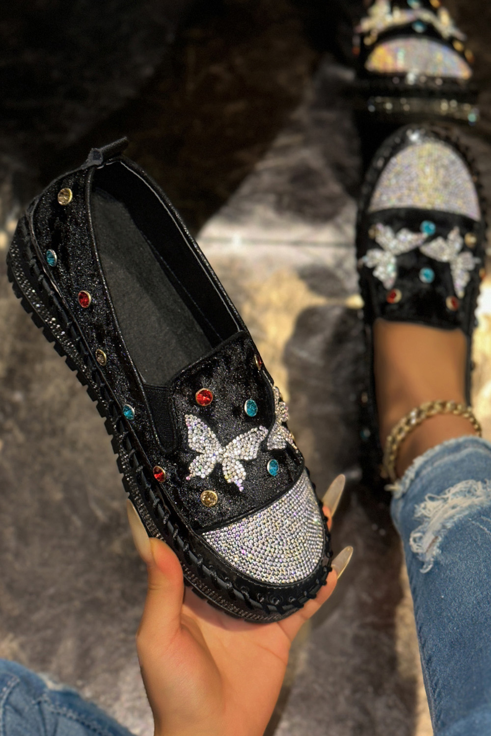 Butterfly Rhinestone Seam Platform Round Toe Loafers