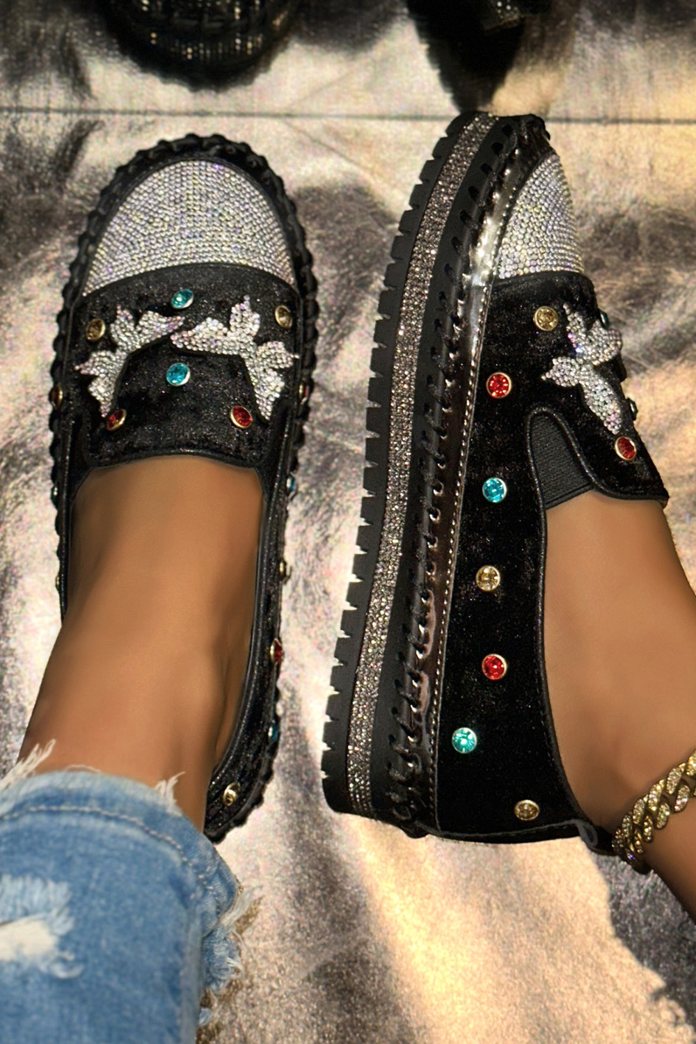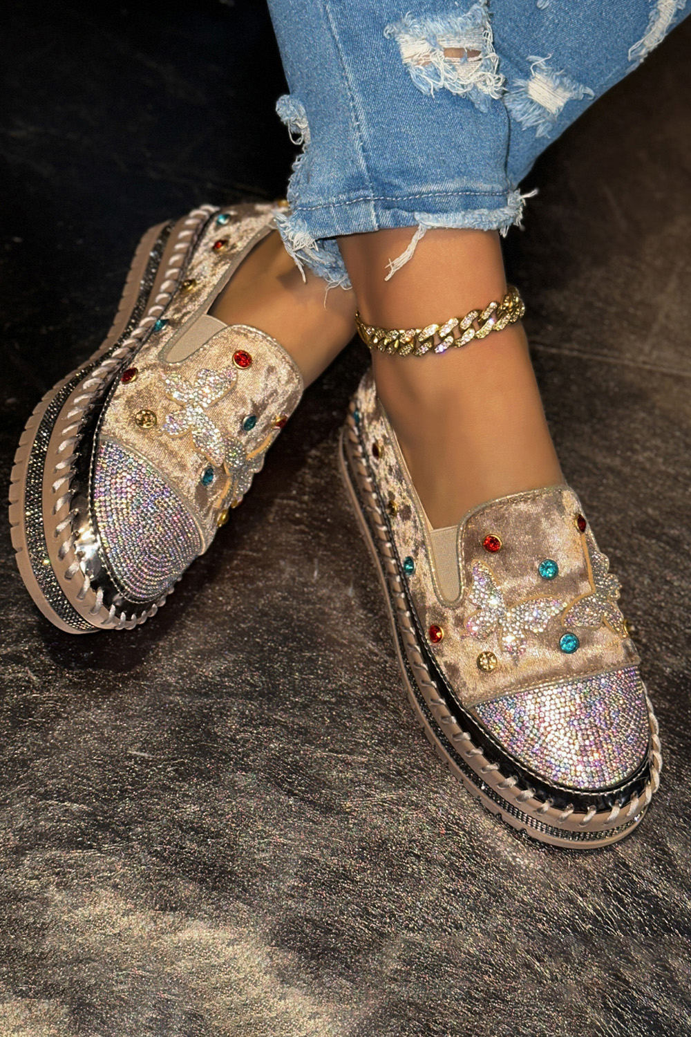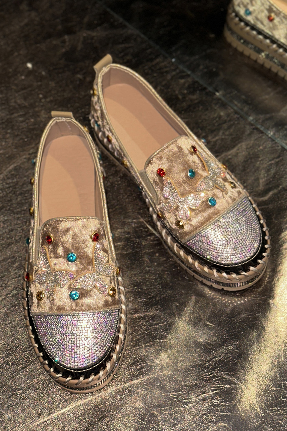 Butterfly Rhinestone Seam Platform Round Toe Loafers