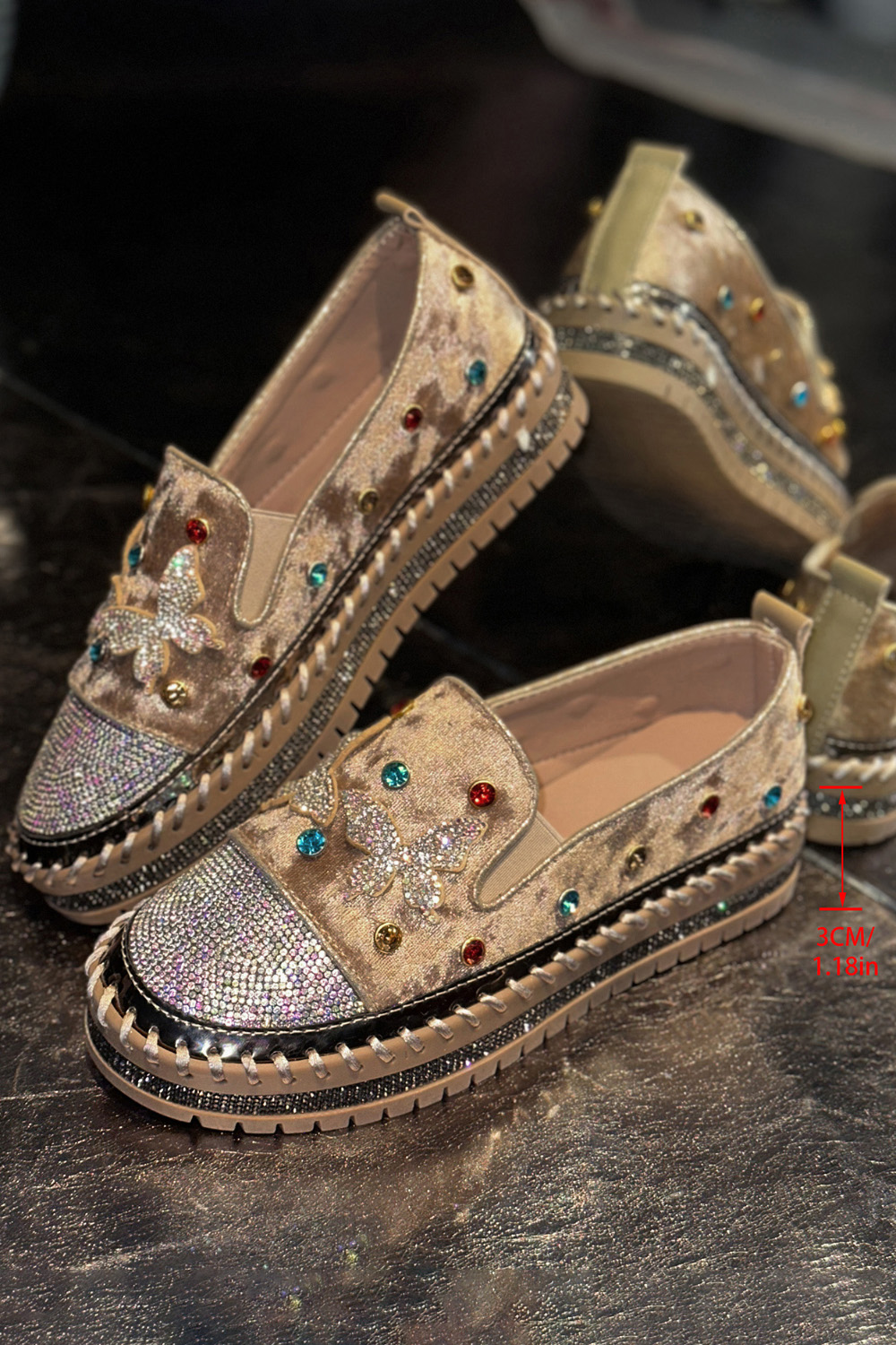 • Butterfly Rhinestone Seam Platform Round Toe Loafers